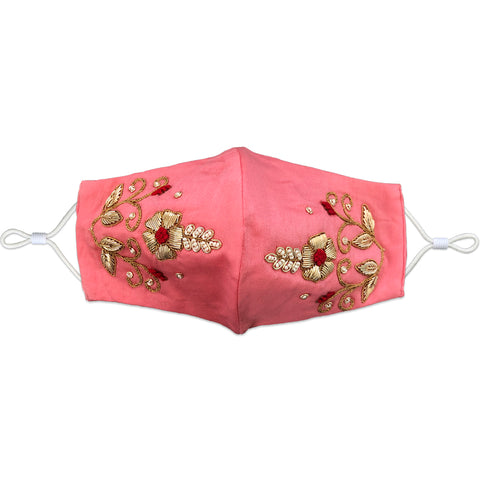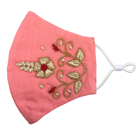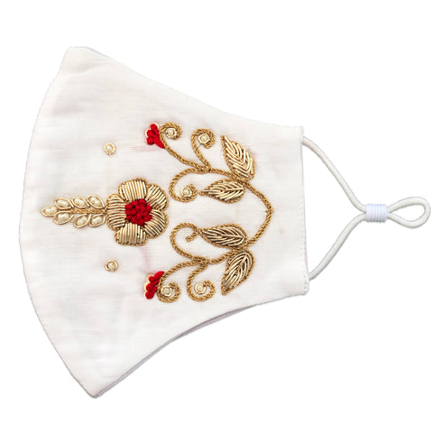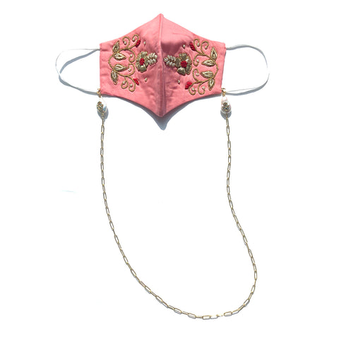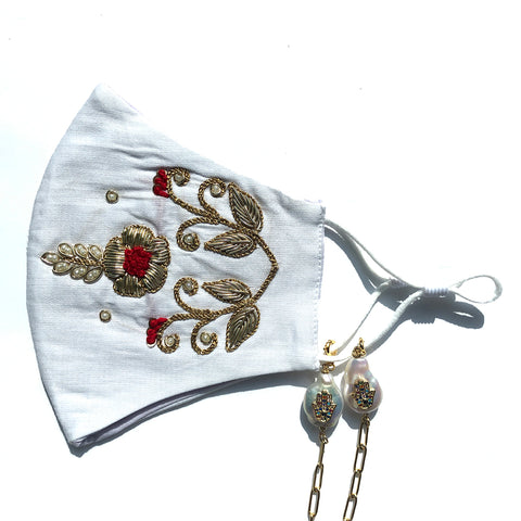 Cotton Face Mask with natural sea water pearl beads and gold plated chain.