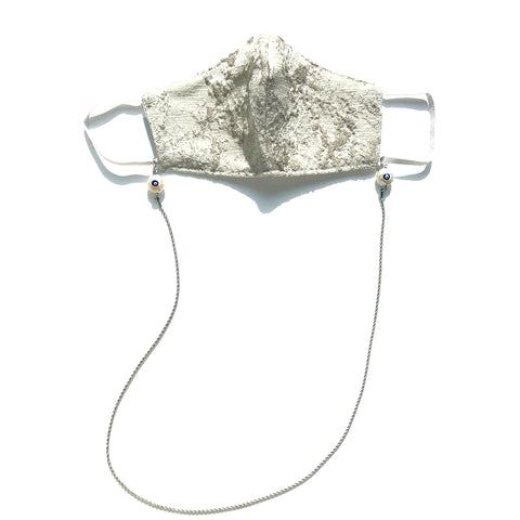 Linen Cotton Face Mask with natural sea water pearl beads and gold plated chain.