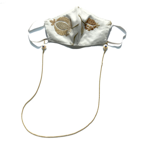 Linen Cotton Face Mask with natural sea water pearl beads and gold plated chain.