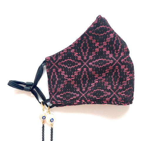 Cotton Face Mask with natural sea water pearl beads and gold plated chain.