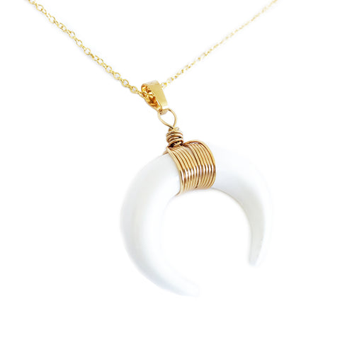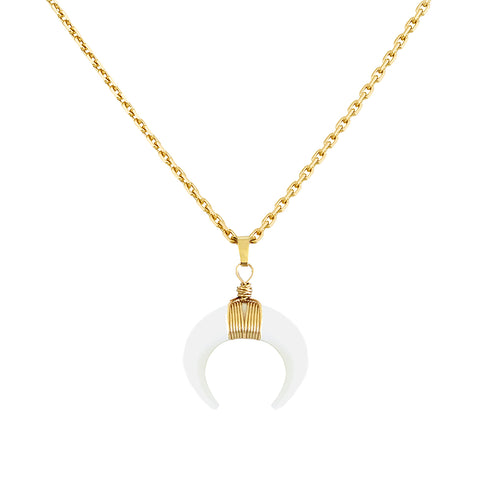 MATERIALS: OX CARVED BONE, 24k GOLD PLATED BRASS WIRE, 316 STAINLESS STEEL (chain)